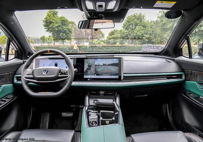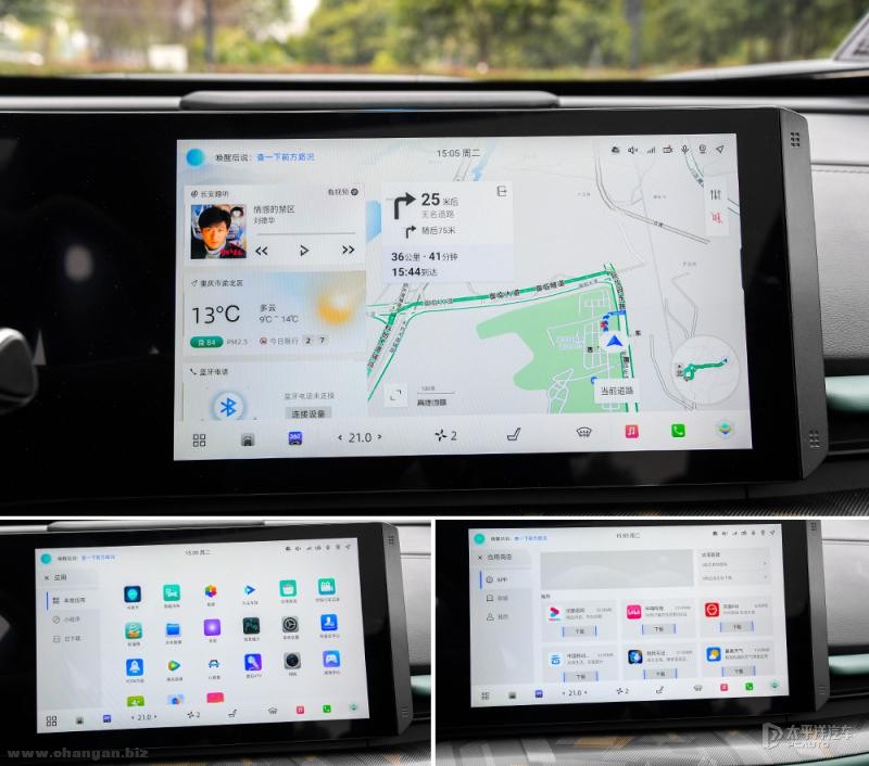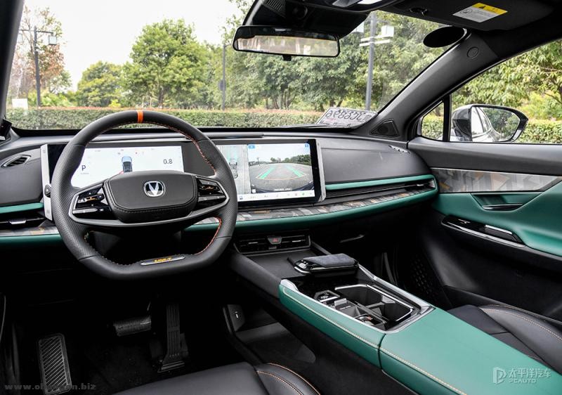 12.3+12.8 英寸的懸浮式雙聯(lián)屏,搭載 " 互動港灣 " 一體式彎連屏,長安全新域控平臺 CIIA1.0+,可實現(xiàn)下電后 OTA 升級,并具備智能電源管理自動預(yù)警,車輛診斷支持故障自診斷和遠程診斷等功能。高通驍龍 8155 車規(guī)級芯片每秒運算可達 8 萬億次,可實現(xiàn)高算力 3D 實時渲染,并且還使用了更加簡潔化的全新 UI。