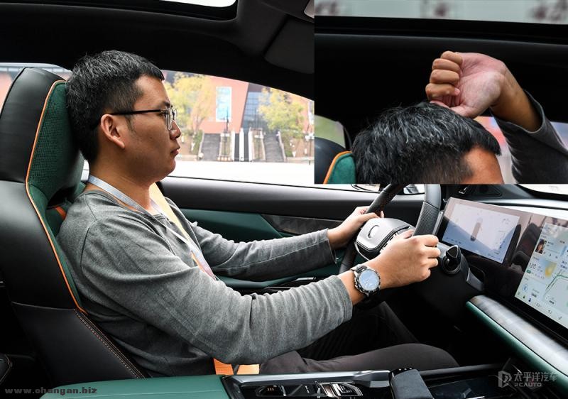 身高 190cm 的乘客,將前排座椅調(diào)整到最低位置,頭部剩余空間為一拳。